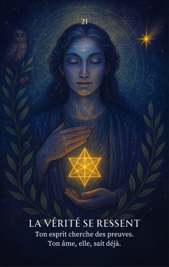 Par mes créations (illustrations, oracles et écrits) et ma guidance, j’accompagne celles et ceux qui ressentent l’appel à se souvenir de qui ils sont au-delà des rôles, des blessures et des conditionnements.